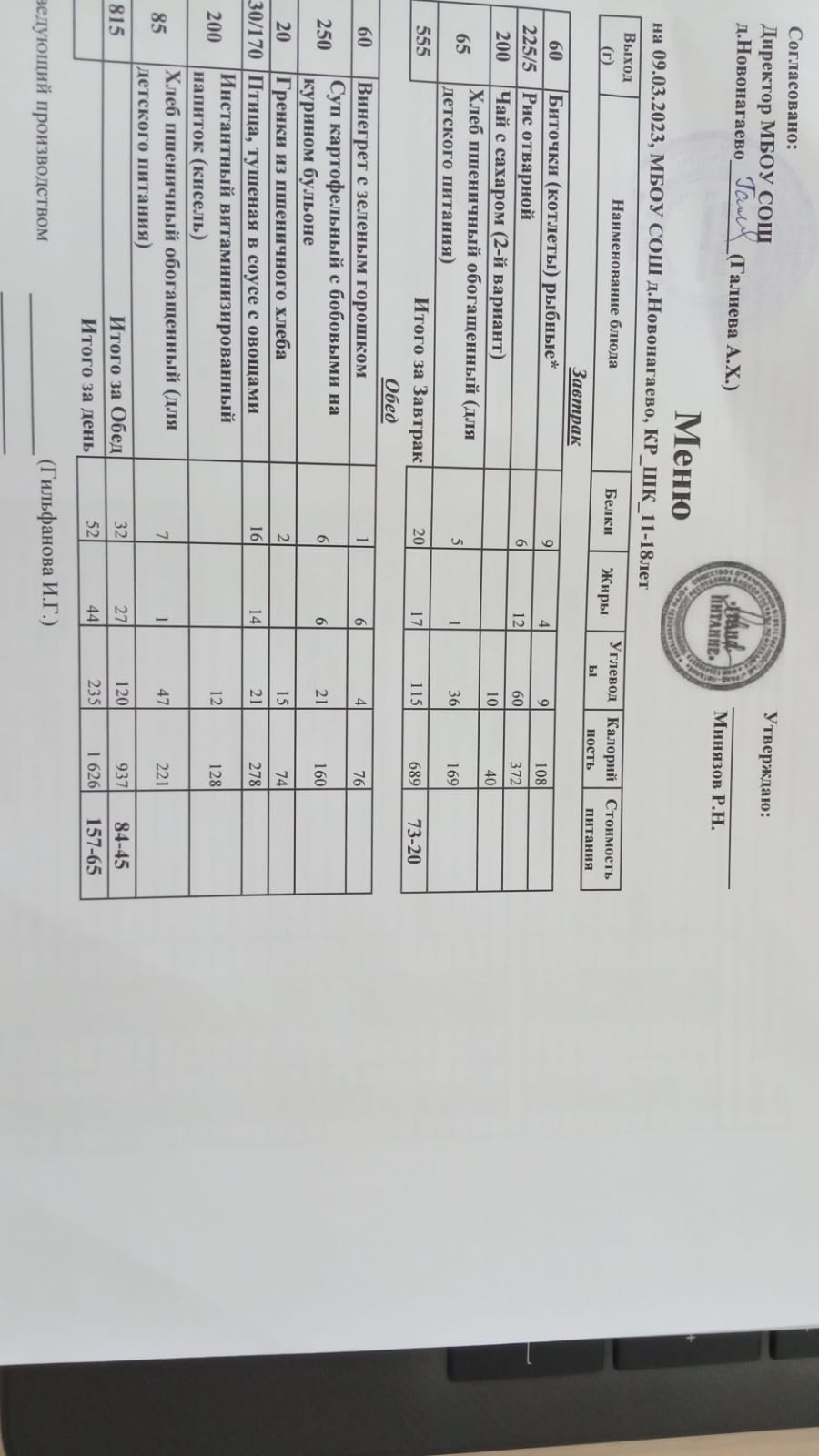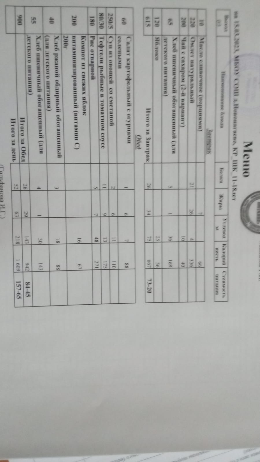 Меню на 09.03.23