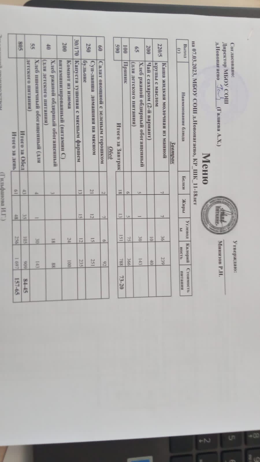 Меню на 07.03.23