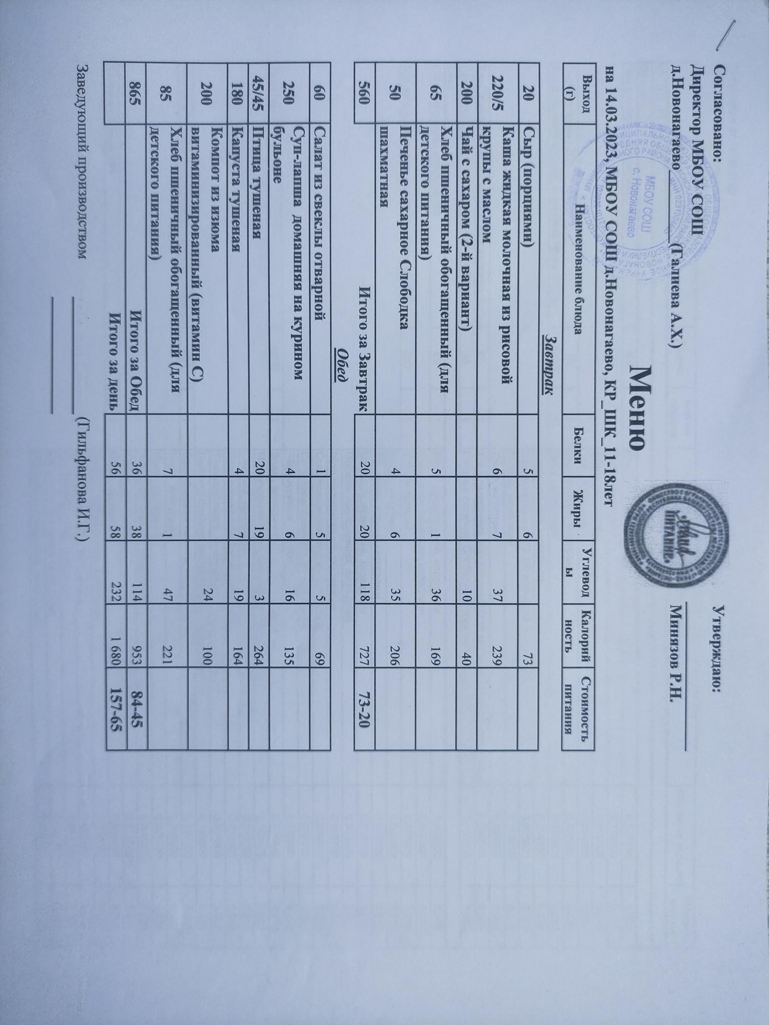Меню на 14.03.23