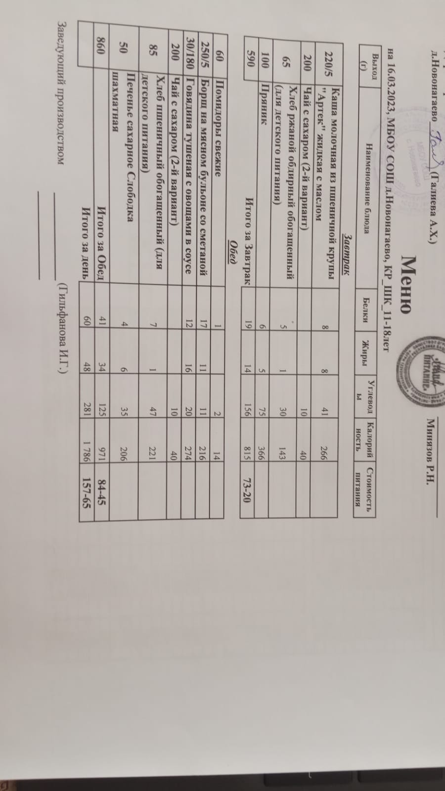 Меню на 16.03.23