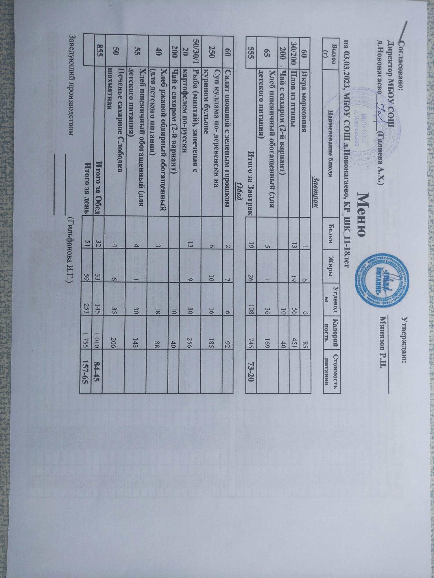 Меню на 03.03.23