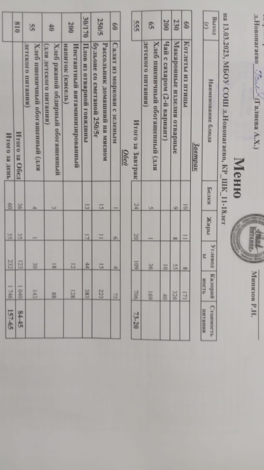 Меню на 13.03.23