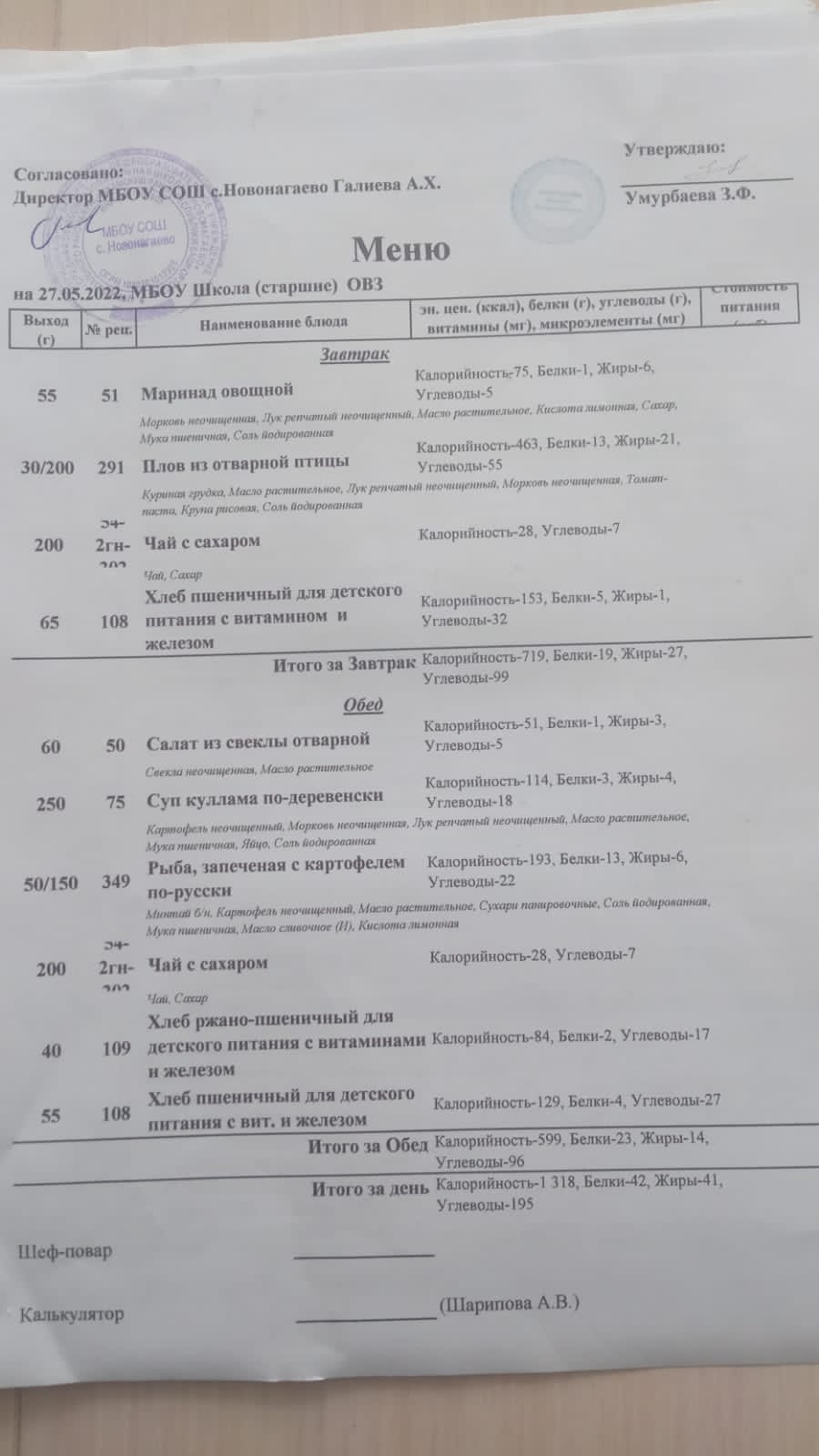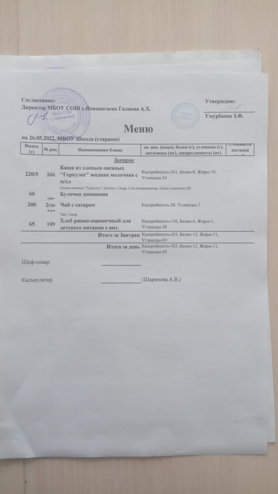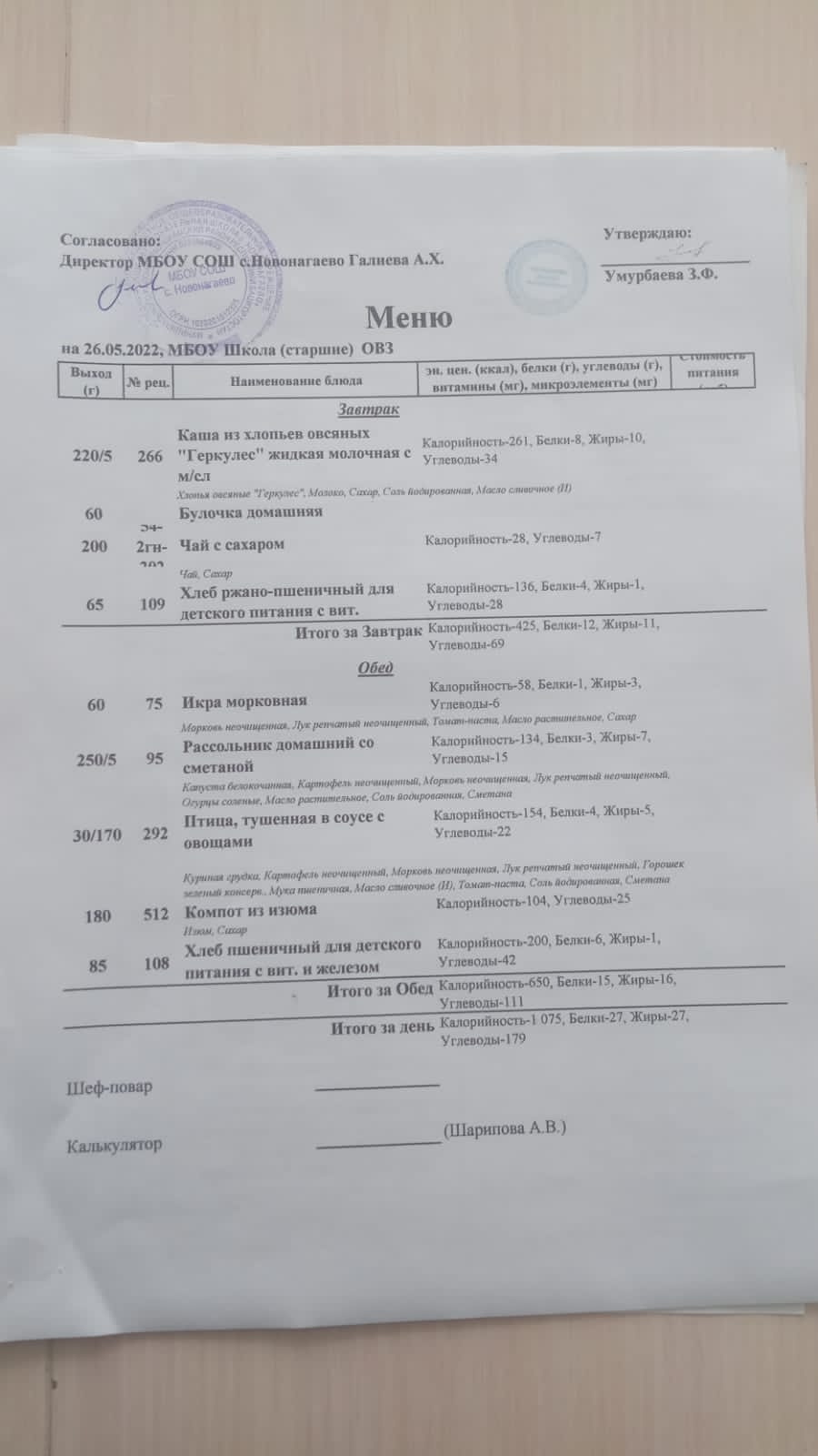 Меню на 26.05.22