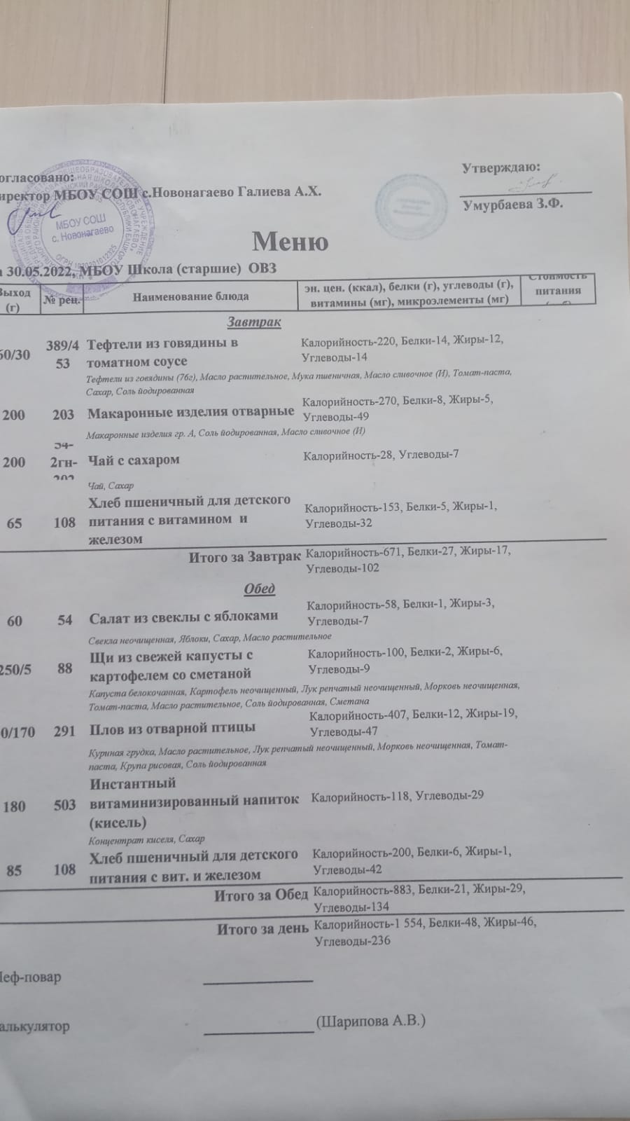 Меню на 30.05.22