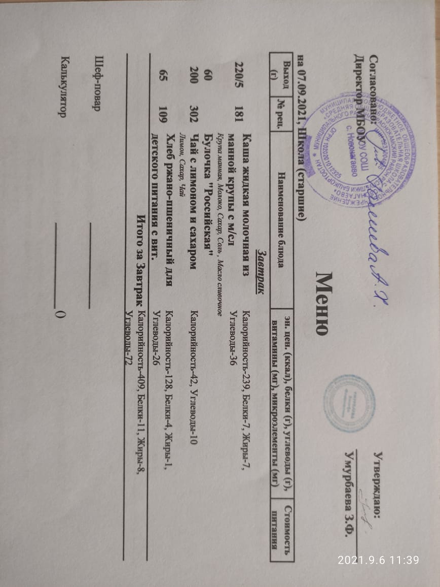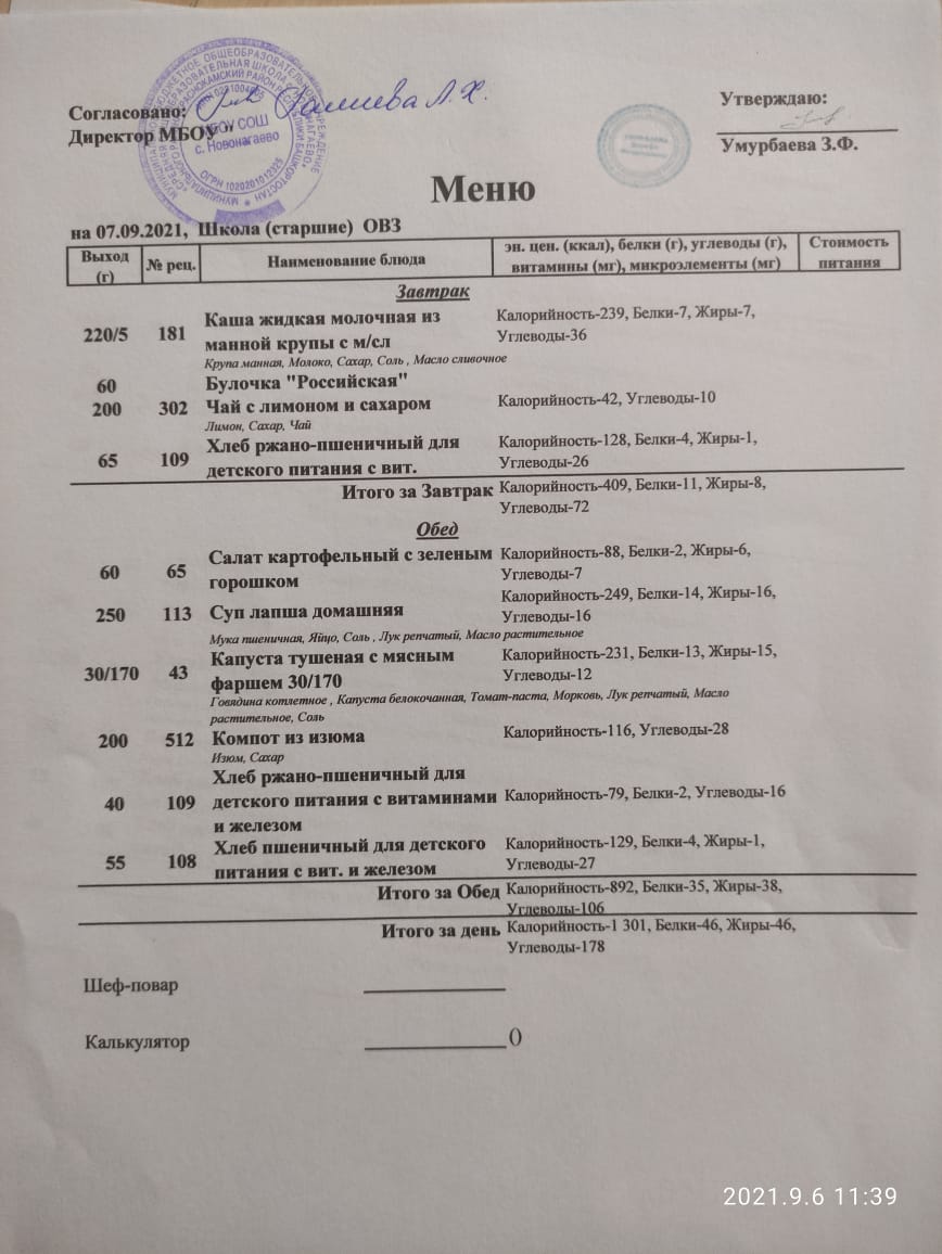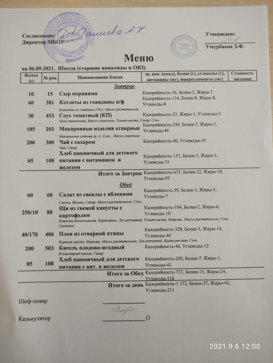 меню на 06.09.21 старшие
