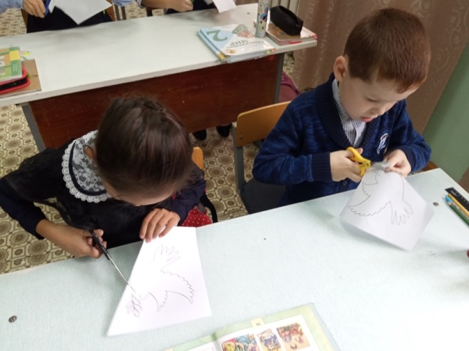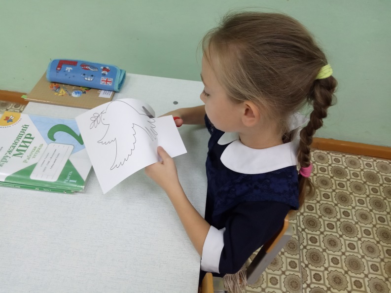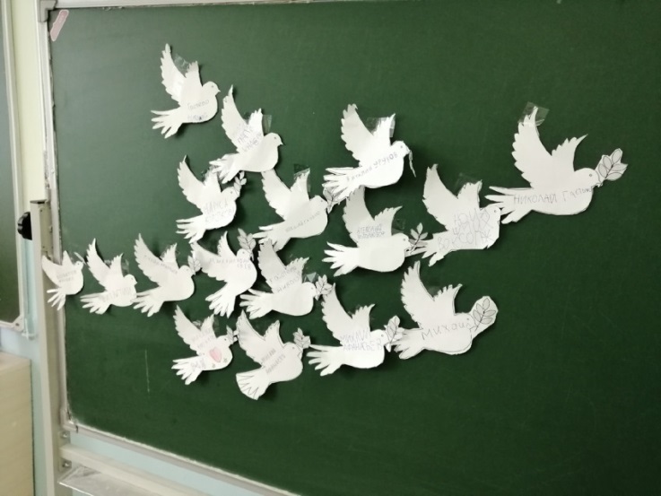 Дети изготовили белых голубей – символов мира и добра. Ученики школы почтили память погибших минутой молчания.