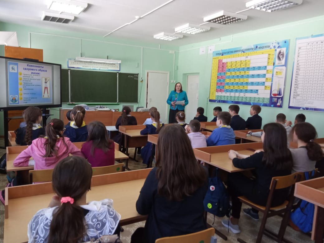 7 апреля в рамках Всемирного Дня здоровья и в целях максимальной популяризации здорового образа жизни среди обучающихся, заботы о здоровье подрастающего поколения в школе прошел классный час "Будь здоров!". Обучающиеся подготовили выступления об истории возникновения Всемирного дня здоровья, перечислили основные правила ЗОЖ, меры профилактики новой коронавирусной инфекции. Учитель биологии и химии Шарипова А.З. рассказала о питании школьников. Основная цель мероприятия пропаганда здорового образа жизни среди подростков, формирование ценностного отношения к собственному здоровью была достигнута.
